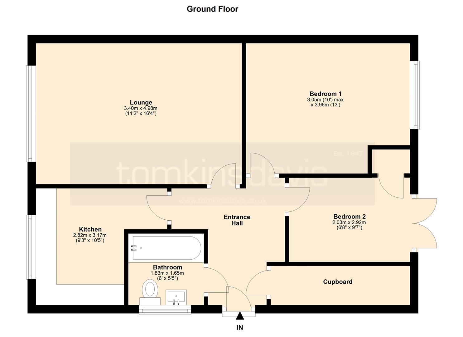 The well-proportioned accommodation comprises a living room, fitted kitchen, 2 bedrooms and a bathroom suite.