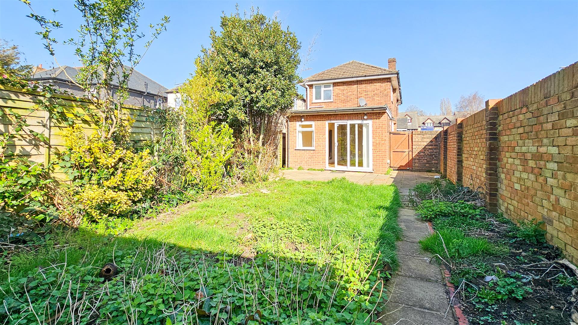 The exterior of the home benefits both front and rear gardens with off-street parking and a large garage.