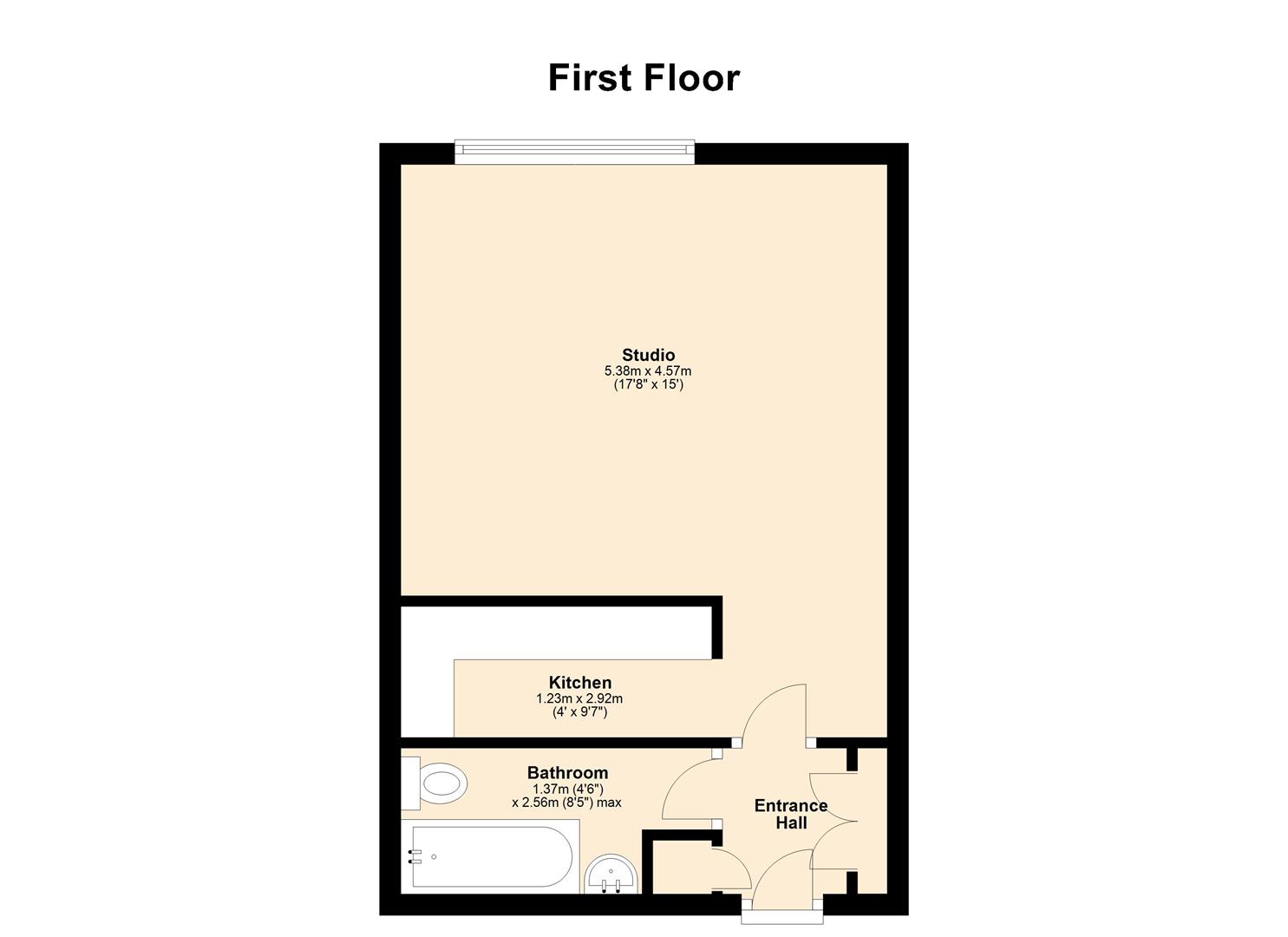 An exceptionally spacious first floor studio flat set in a purpose built development with secure parking.